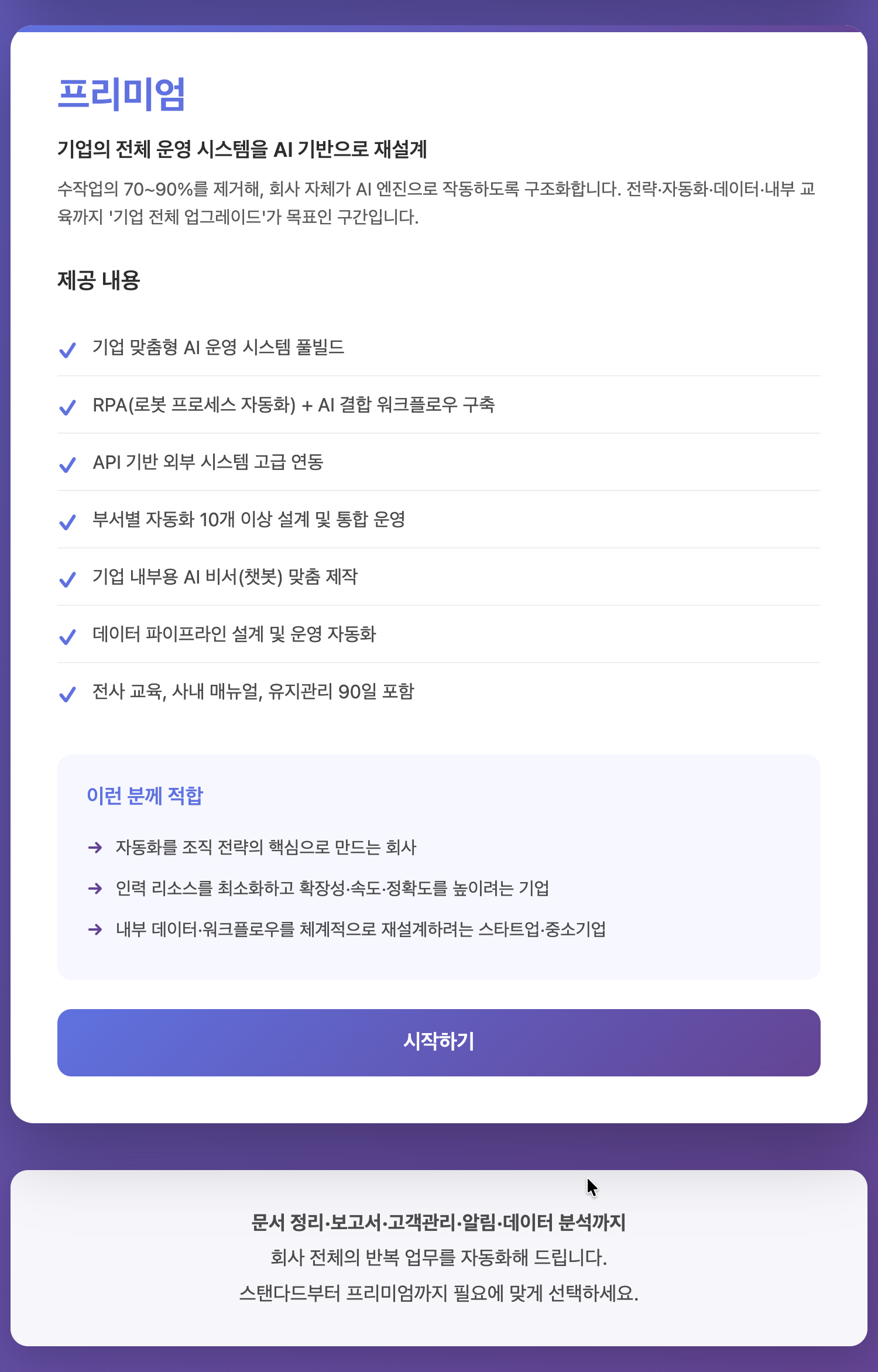 기업의 전체 운영 시스템을 AI 기반으로 재설계하는 최상위 플랜.