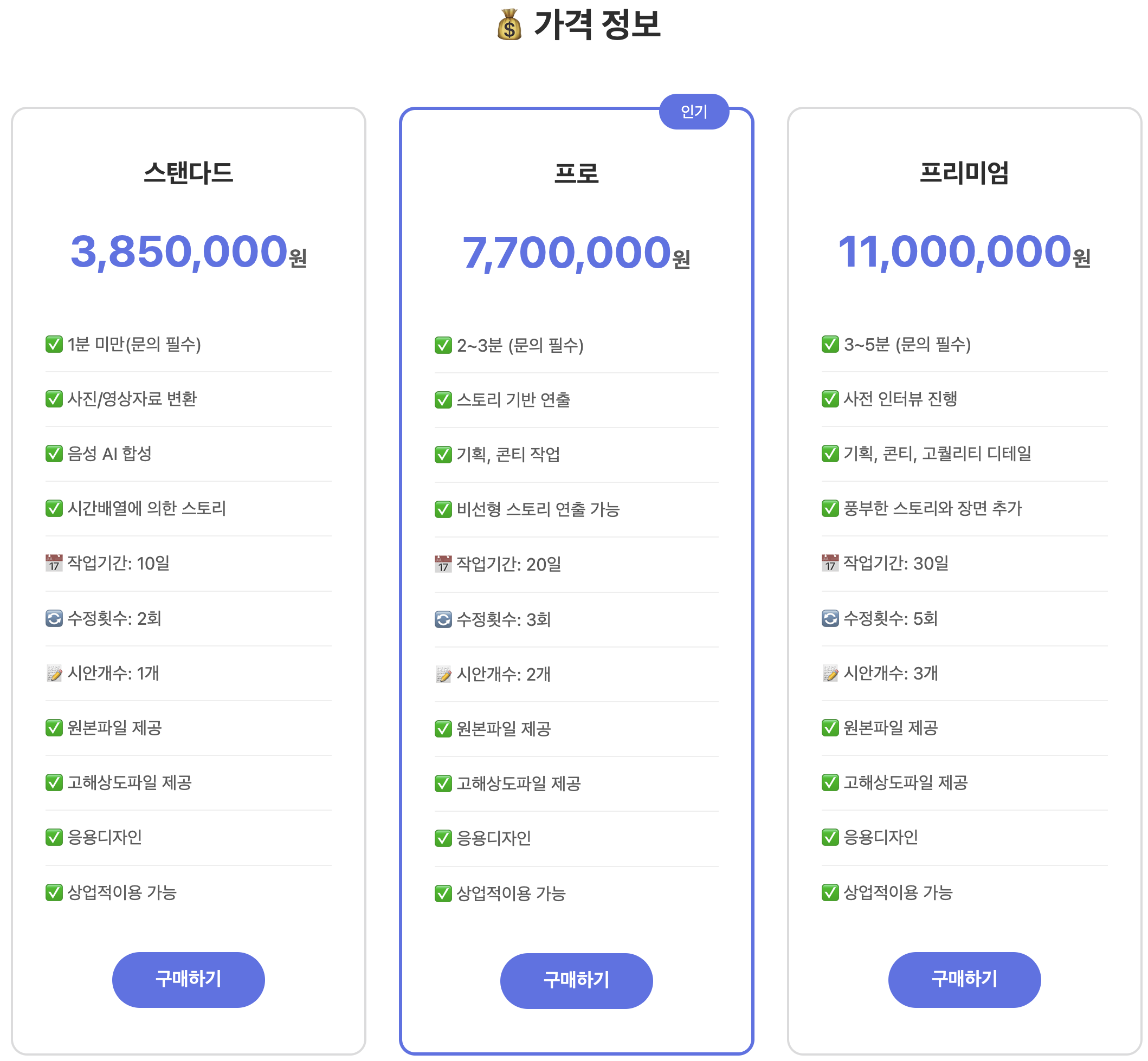 모델 학습 등의 작업은 별도 견적입니다.